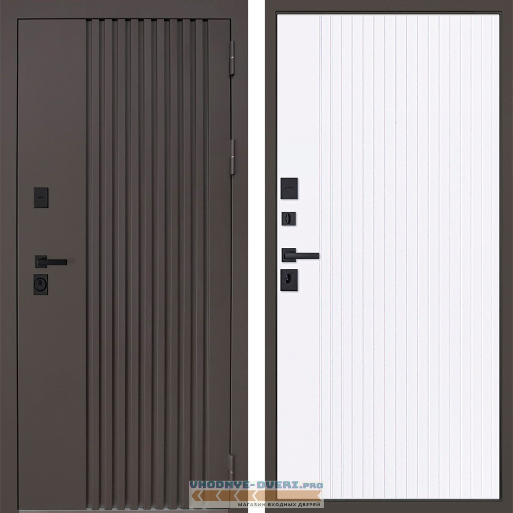 Внешняя отделка — Лист металла 1,8 мм. Вертикальные рейки из металла. Два слоя покрытия. Наличник гладкий.