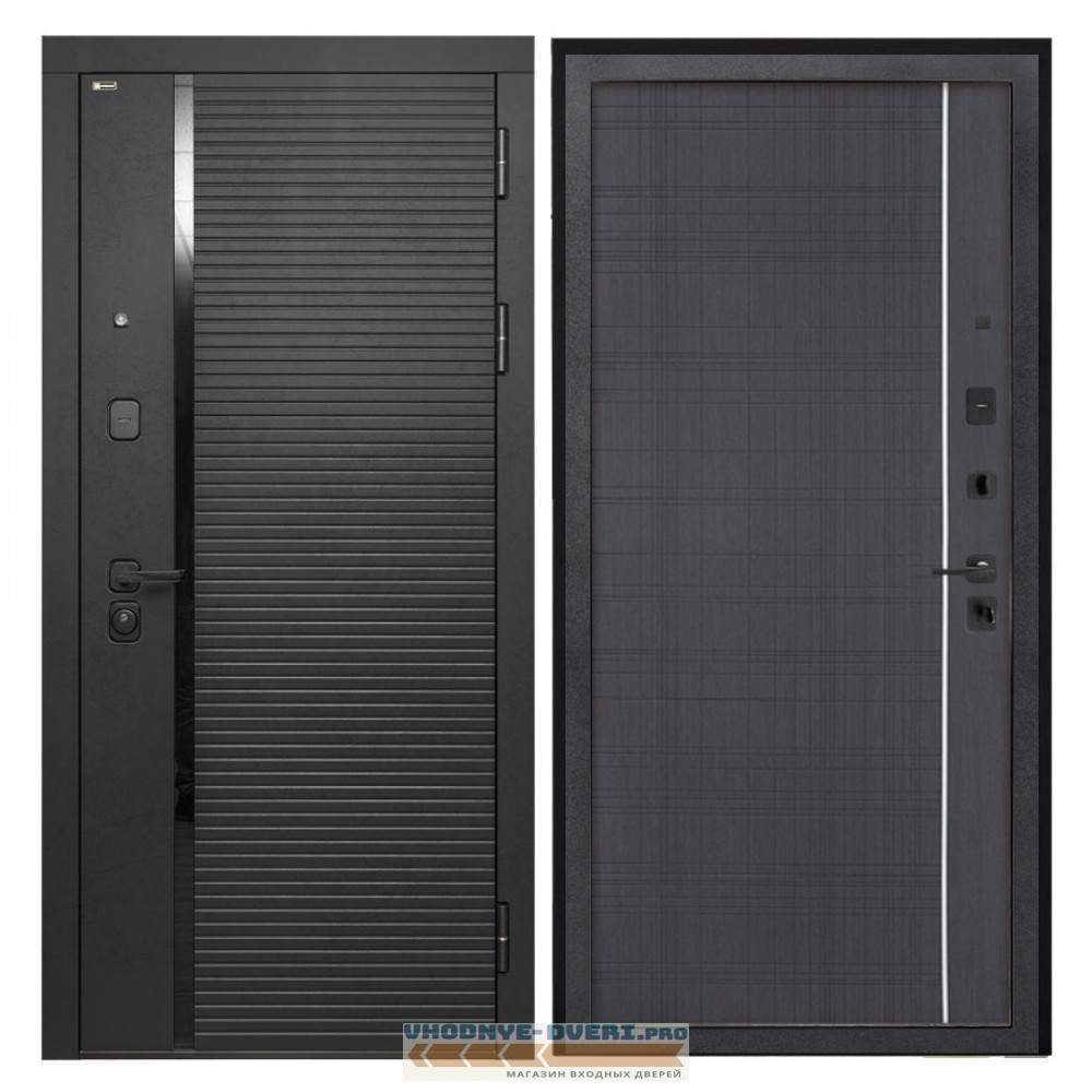 Отделка снаружи — панель МДФ 10 мм, ламин. фрез. мат, цвет «Лофт черный», МДФ наличник прямой, вставка из СТЕКЛА «лакобель черная»