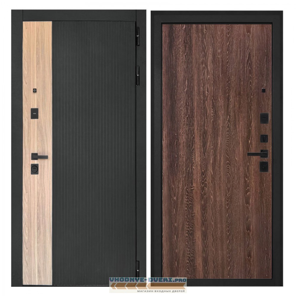 Отделка снаружи — панель МДФ 16 мм, пленка цвет «Лофт черный» + вставка «Ильм американский» МДФ наличники