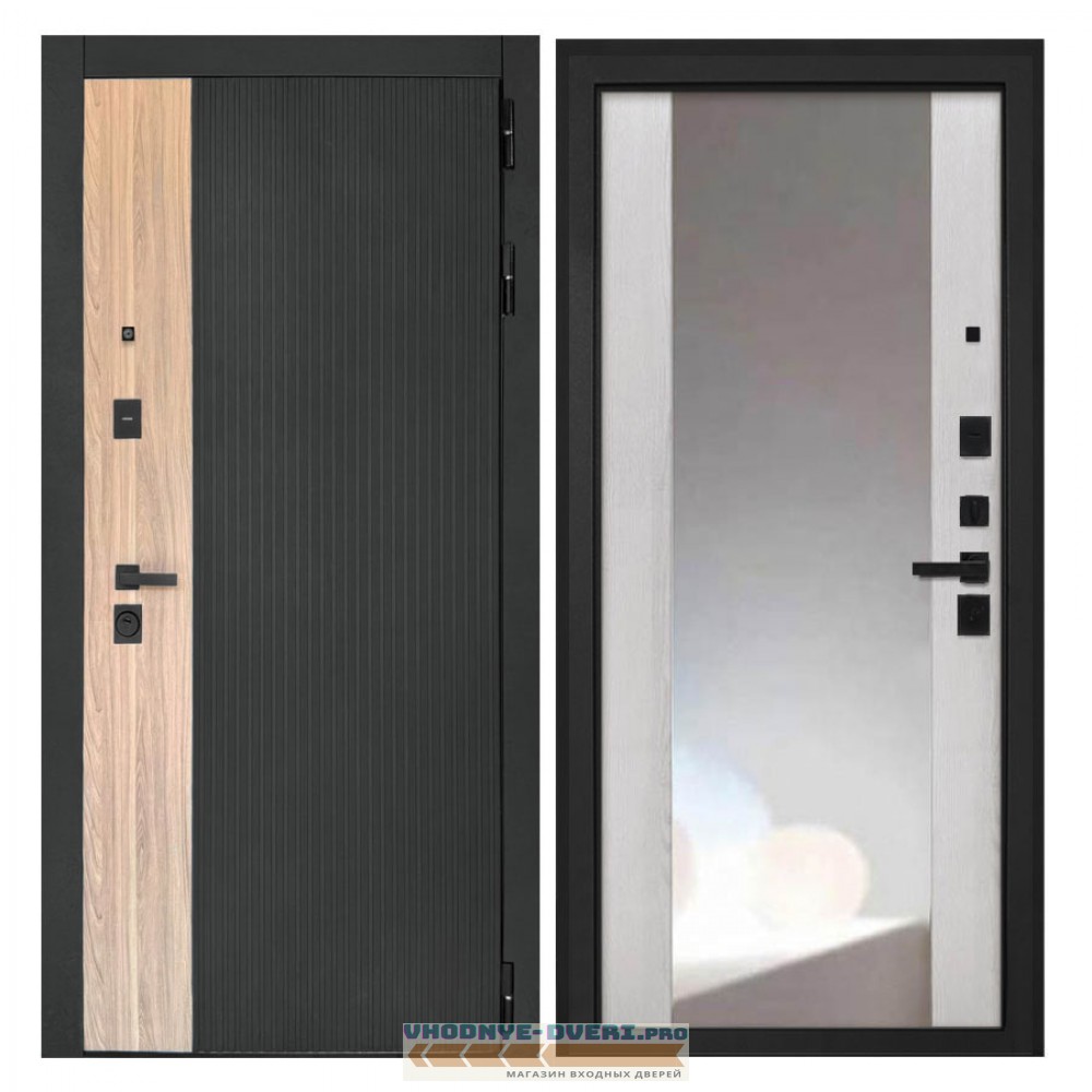Отделка снаружи — панель МДФ 16 мм, пленка цвет «Лофт черный» + вставка «Ильм американский» МДФ наличники