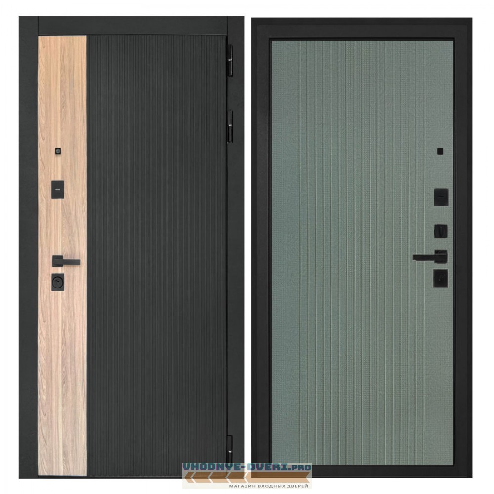 Отделка снаружи — панель МДФ 16 мм, пленка цвет «Лофт черный» + вставка «Ильм американский» МДФ наличники