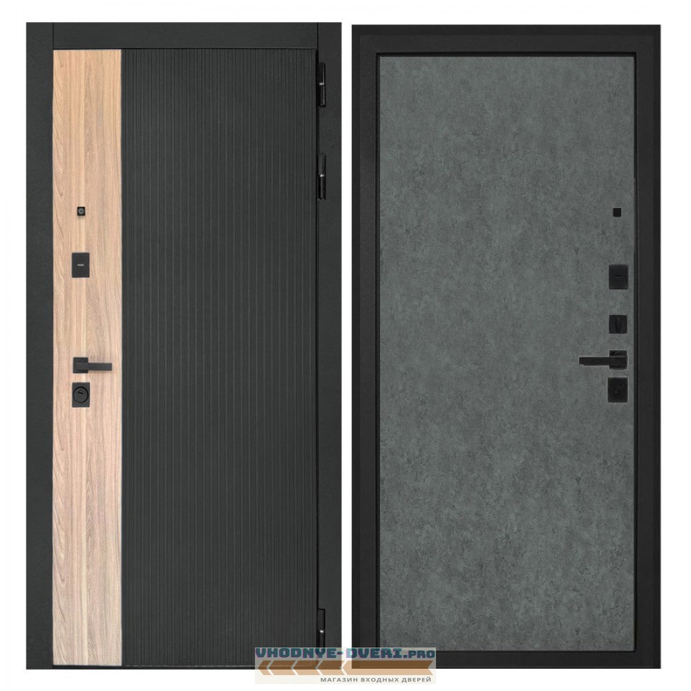 Отделка снаружи — панель МДФ 16 мм, пленка цвет «Лофт черный» + вставка «Ильм американский» МДФ наличники