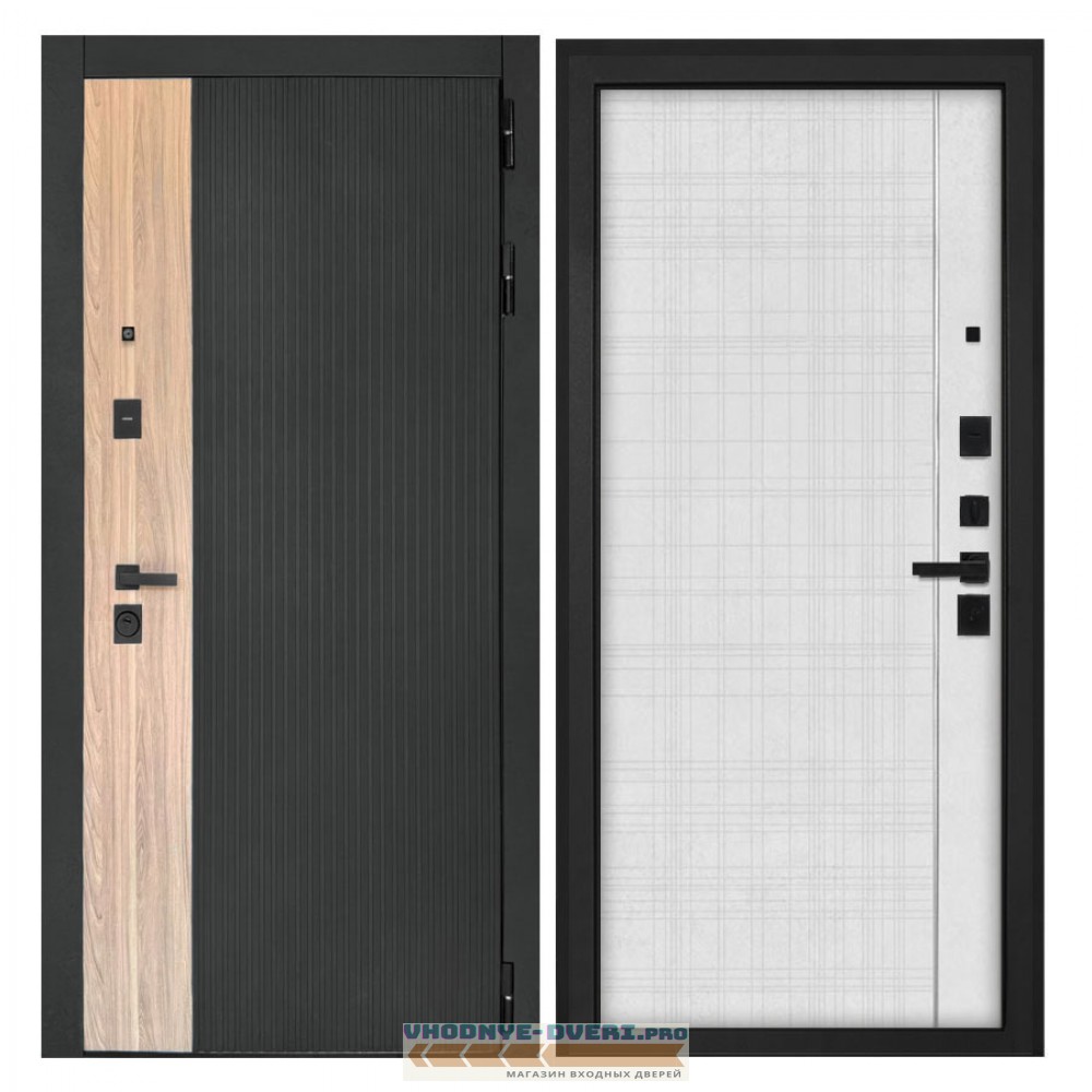 Отделка снаружи — панель МДФ 16 мм, пленка цвет «Лофт черный» + вставка «Ильм американский» МДФ наличники