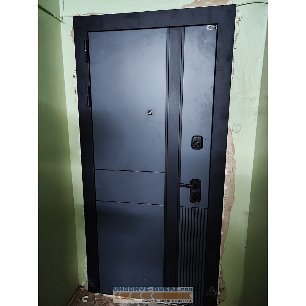 Полный комплект — Фурнитура в черном цвете: Броненакладка врезная, накладка со шторкой, глазок , дверная ручка, ночная задвижка. Цилиндр ключ-вертушка (производитель не регламентируется), регулируемый эксцентрик.