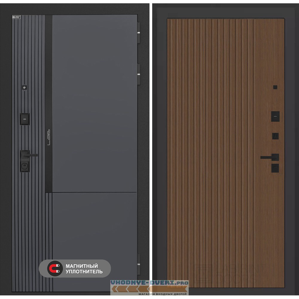 Отделка снаружи — Фрезерованная МДФ панель 10 мм, цвет "Velluto Oskuro" с патиной и вставкой из металла в цвет наличника (заподлицо)