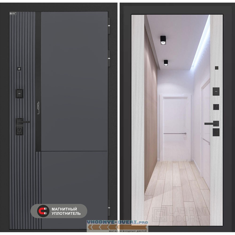 Отделка снаружи — Фрезерованная МДФ панель 10 мм, цвет "Velluto Oskuro" с патиной и вставкой из металла в цвет наличника (заподлицо)