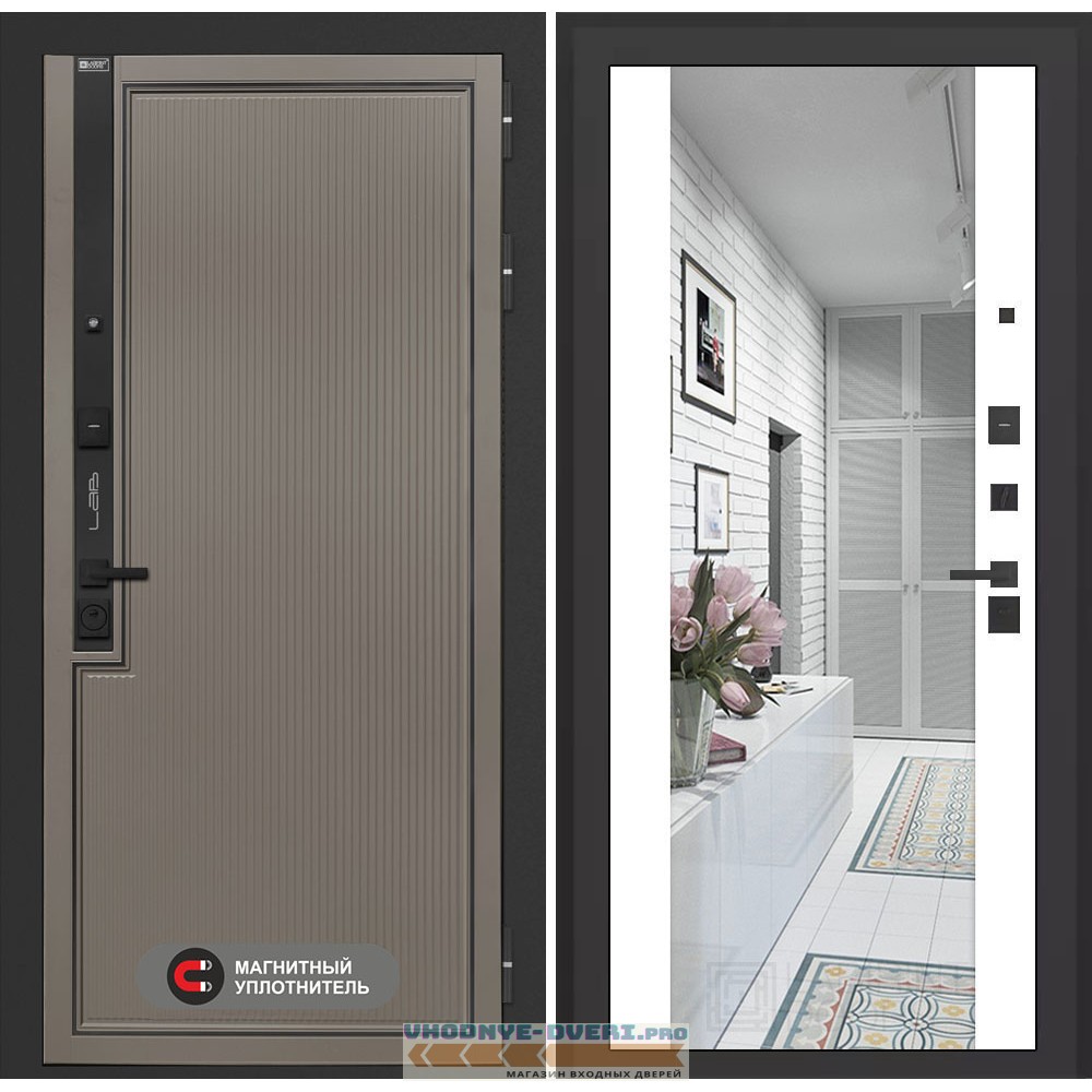 Внутренняя отделка — Декоративная MDF панель 12 мм с широким зеркалом, цвет "Белый софт" (без текстуры)