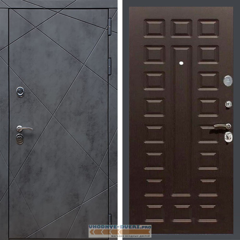 • внешняя: фрезерованная МДФ‑панель 16 мм, цвет «Тёмный бетон»;