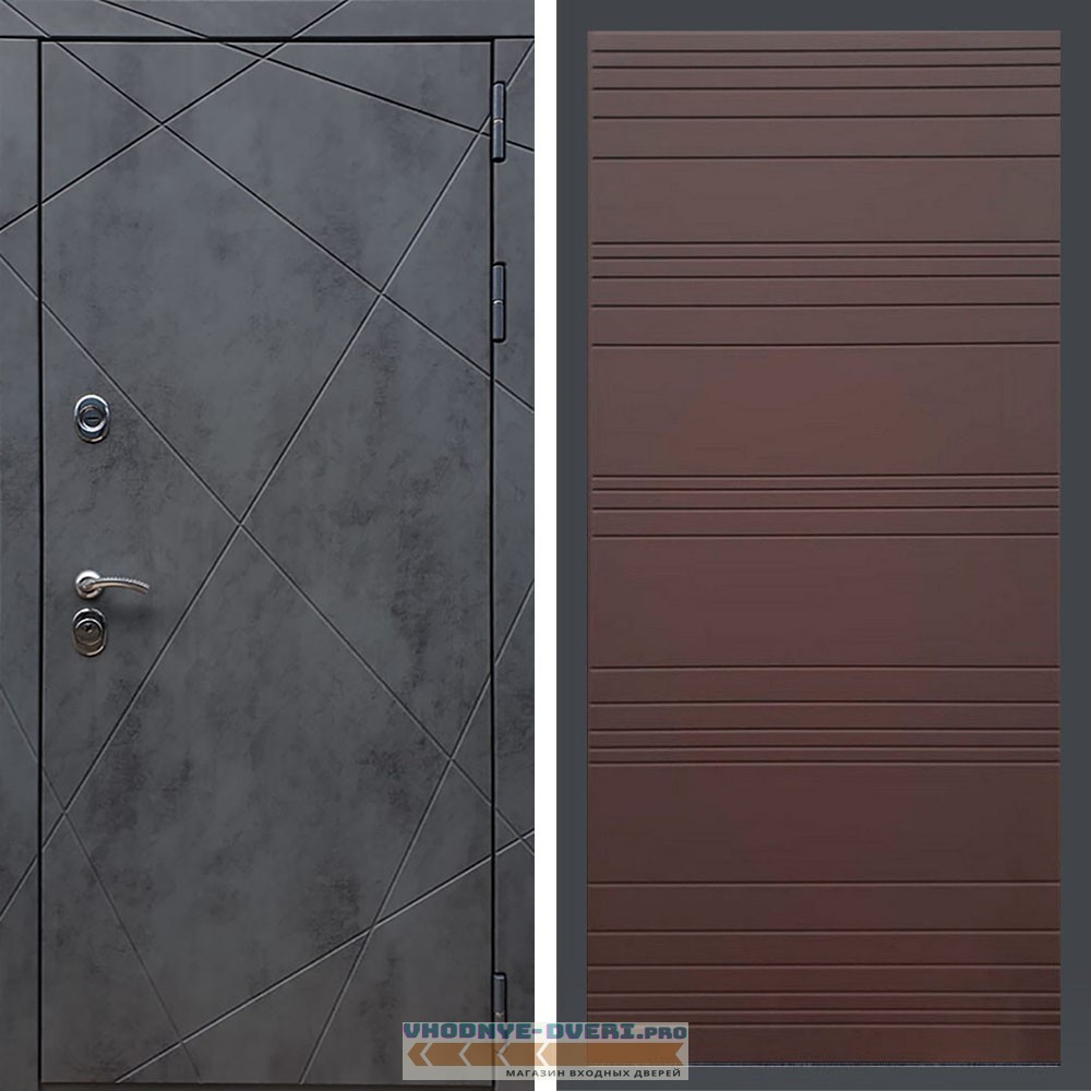 • внешняя: фрезерованная МДФ‑панель 16 мм, цвет «Тёмный бетон»;