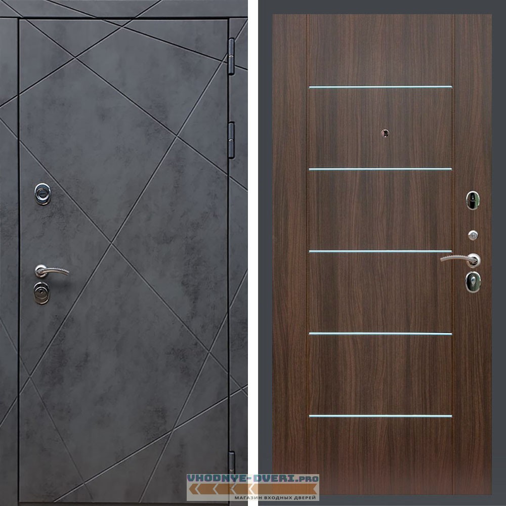 • внешняя: фрезерованная МДФ‑панель 16 мм, цвет «Тёмный бетон»;