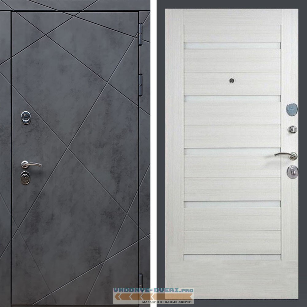 Входная дверь REX (Рекс) 13 Бетон сб-14 лиственница беж. белое стекло