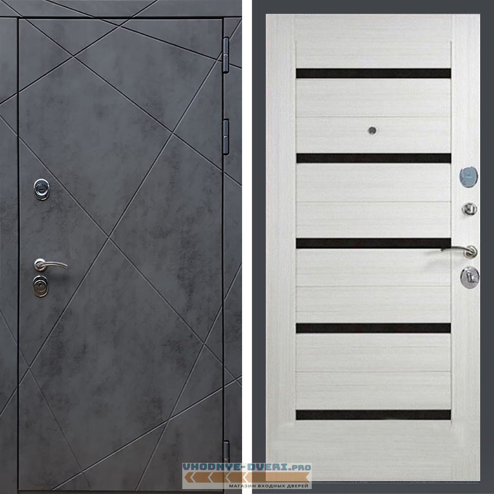 Входная дверь REX (Рекс) 13 Бетон сб-14 лиственница беж. черное стекло