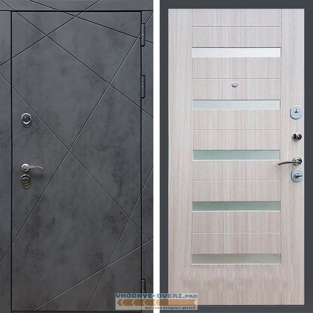 Входная дверь REX (Рекс) 13 Бетон СБ-14 сандал светлый белое стекло