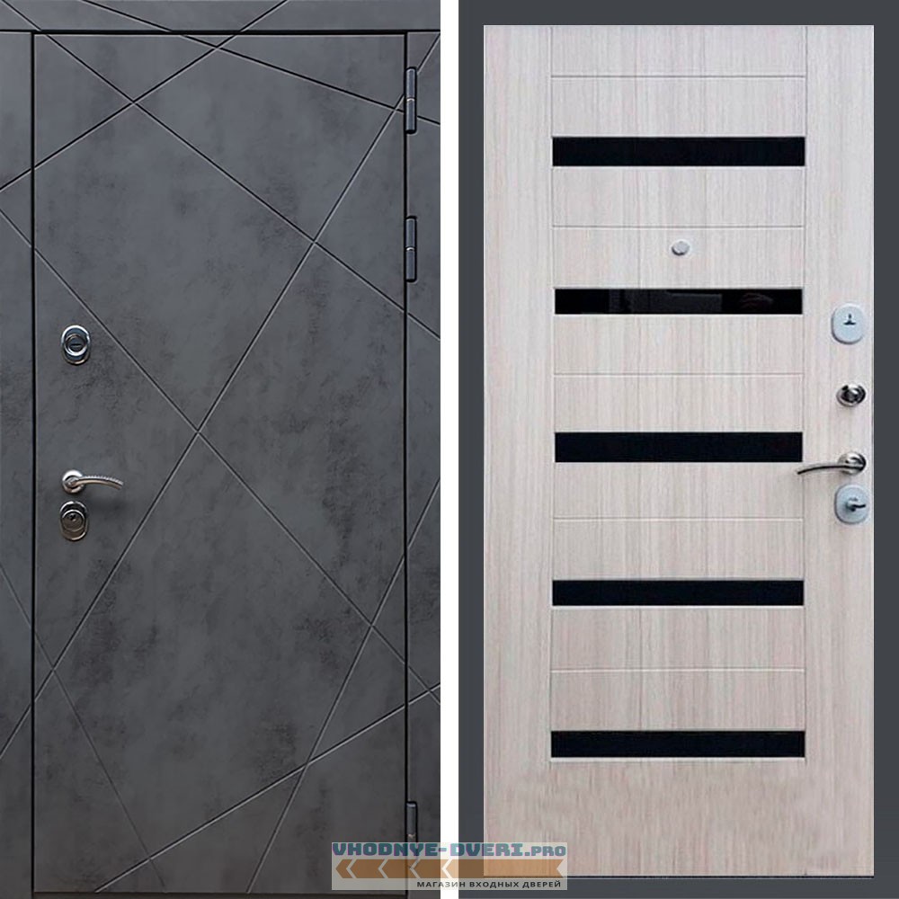 Входная дверь REX (Рекс) 13 Бетон СБ-14 сандал светлый черное стекло