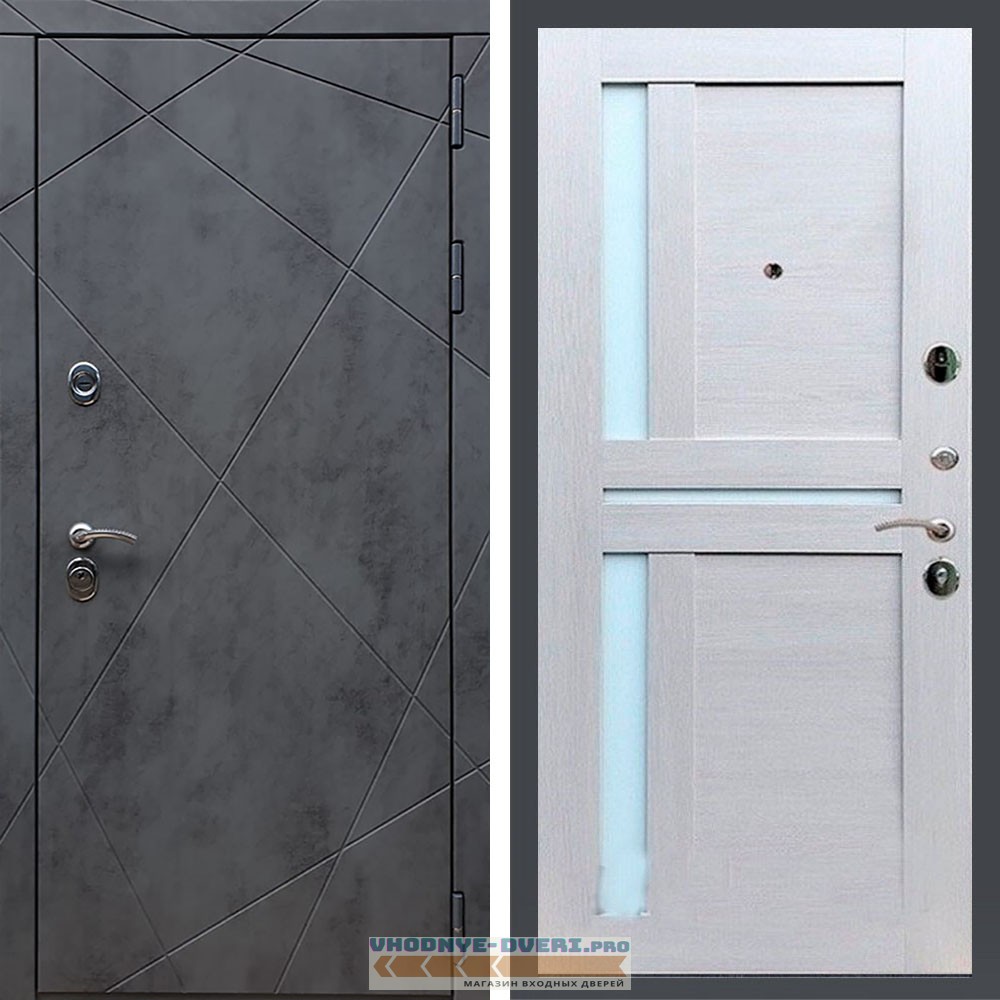 Входная дверь REX (Рекс) 13 Бетон сб-18 лиственница бежевая белое стекло