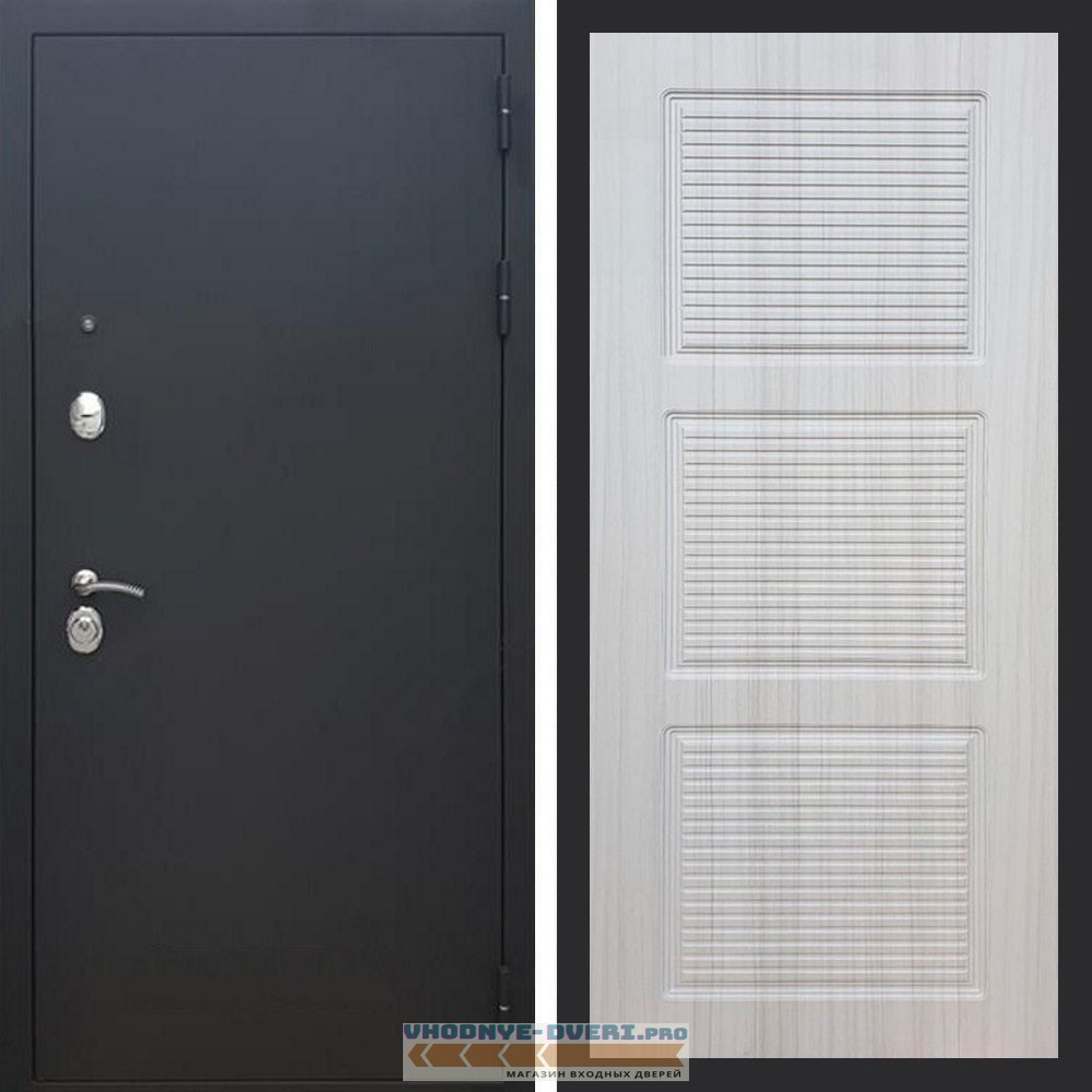 Входная дверь REX (Рекс) 1А Муар Чёрный фл-1 беленый дуб