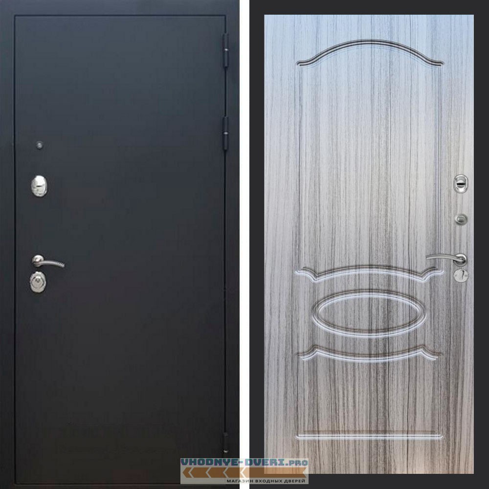 Входная дверь REX (Рекс) 1А Муар Чёрный ФЛ-128 Сандал серый