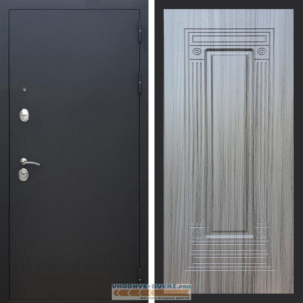 Входная дверь REX (Рекс) 1А Муар Чёрный фл-4 сандал серый