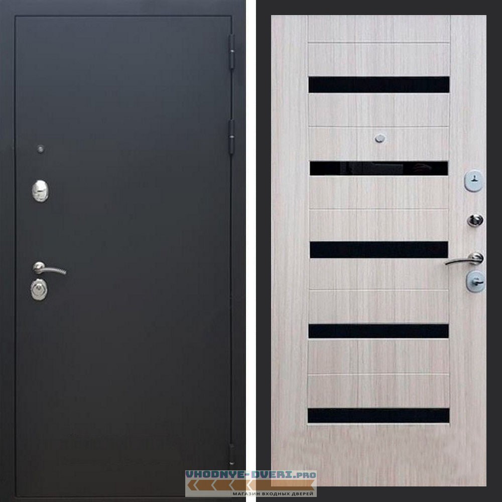 Входная дверь REX (Рекс) 1А Муар Чёрный СБ-14 сандал светлый черное стекло