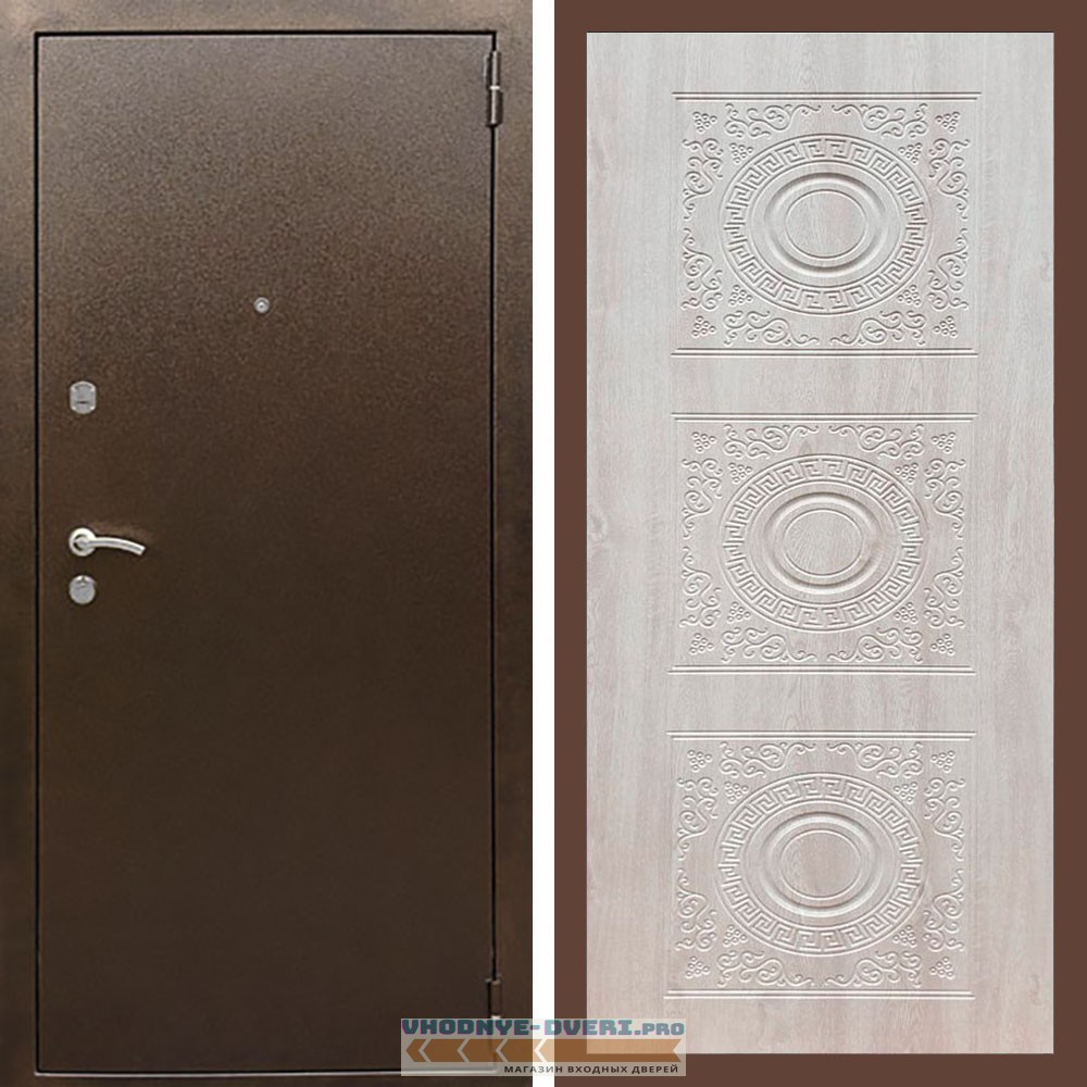Входная дверь REX (Рекс) 1А Медный антик д-18 сосна белая