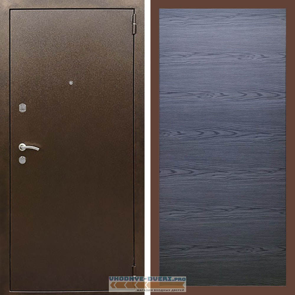 Входная дверь REX (Рекс) 1А Медный антик дуб тангент черный горизонт софт