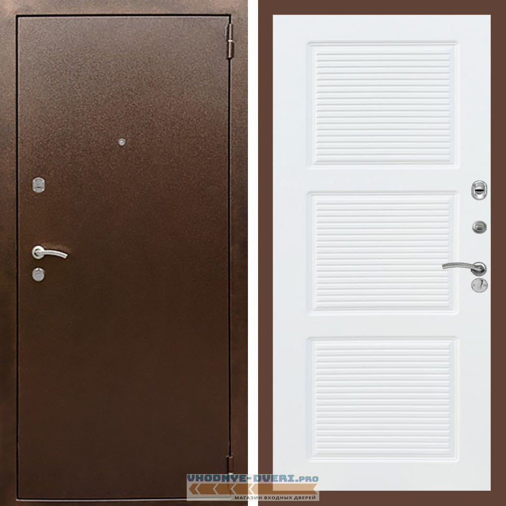 Входная дверь REX (Рекс) 1А Медный антик ФЛ-1 белый матовый