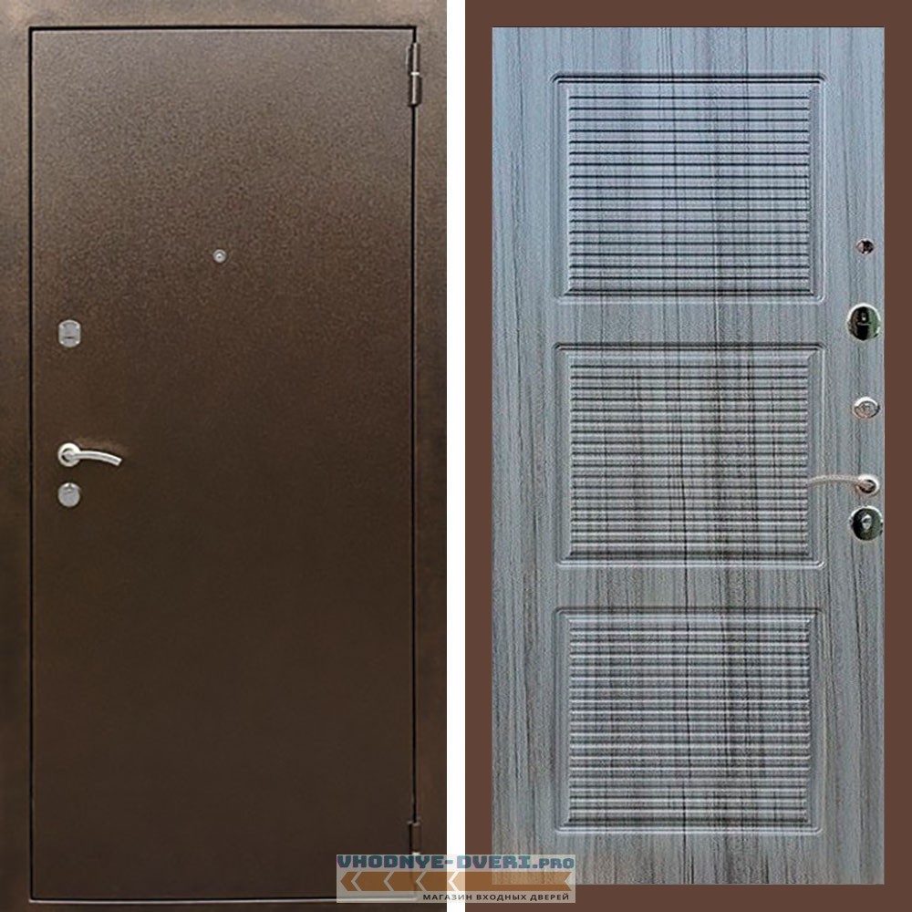 Входная дверь REX (Рекс) 1А Медный антик ФЛ-1 сандал серый
