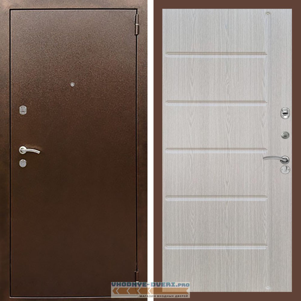 Входная дверь REX (Рекс) 1А Медный антик ФЛ-102 Беленый дуб