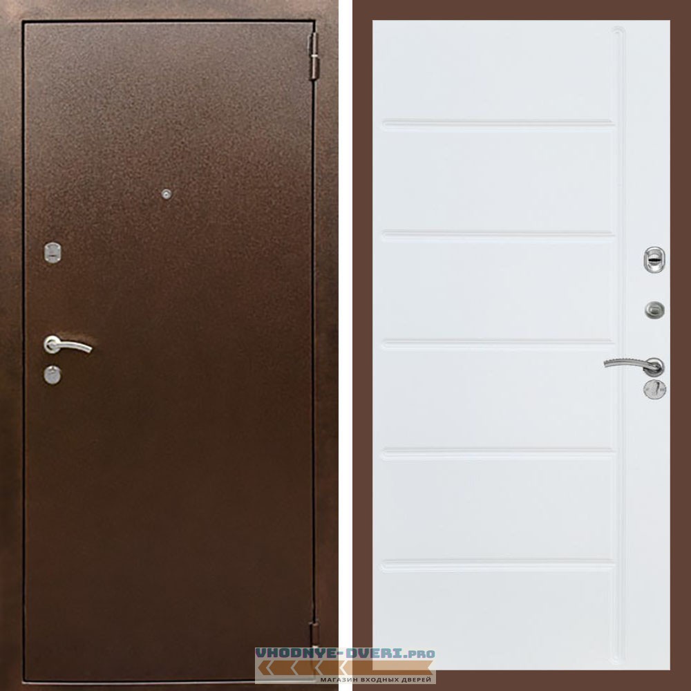 Входная дверь REX (Рекс) 1А Медный антик ФЛ-102 Белый матовый