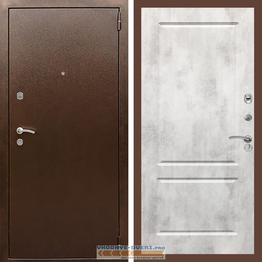 Входная дверь REX (Рекс) 1А Медный антик ФЛ-117 бетон светлый