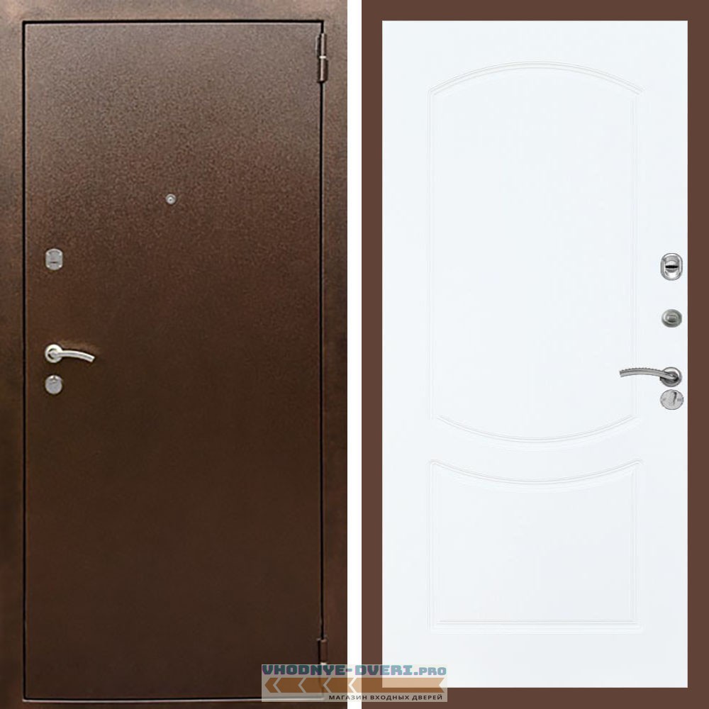 Входная дверь REX (Рекс) 1А Медный антик ФЛ-123 Белый матовый