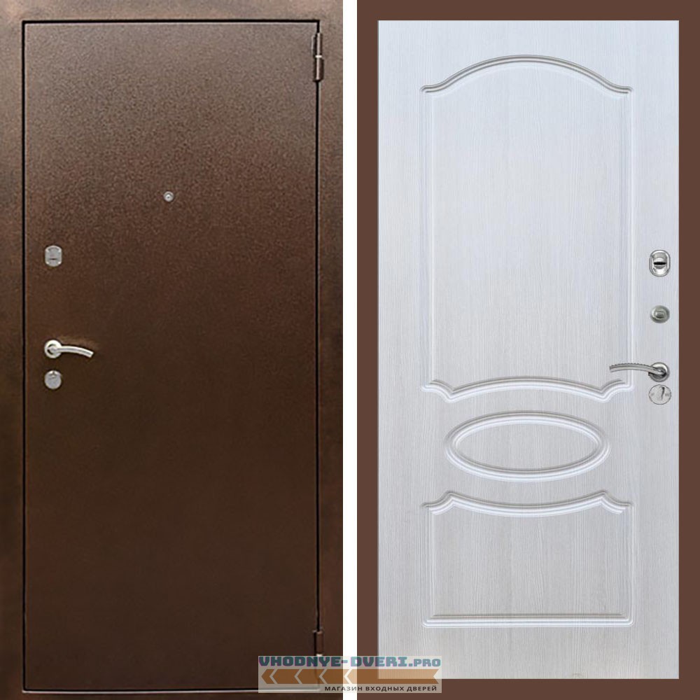 Входная дверь REX (Рекс) 1А Медный антик ФЛ-128 Лиственница бежевая