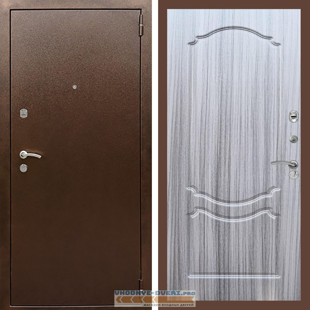 Входная дверь REX (Рекс) 1А Медный антик ФЛ-130 Сандал серый