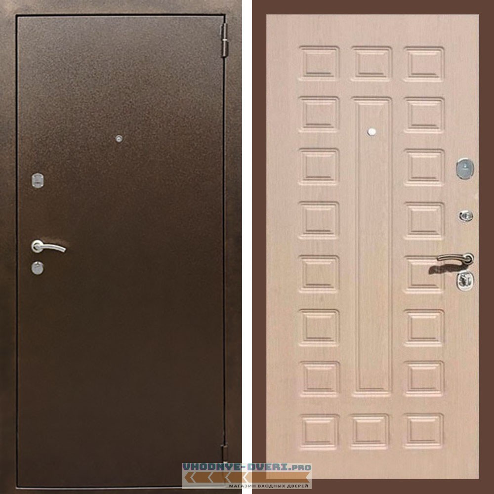 Входная дверь REX (Рекс) 1А Медный антик ФЛ-183 беленый дуб