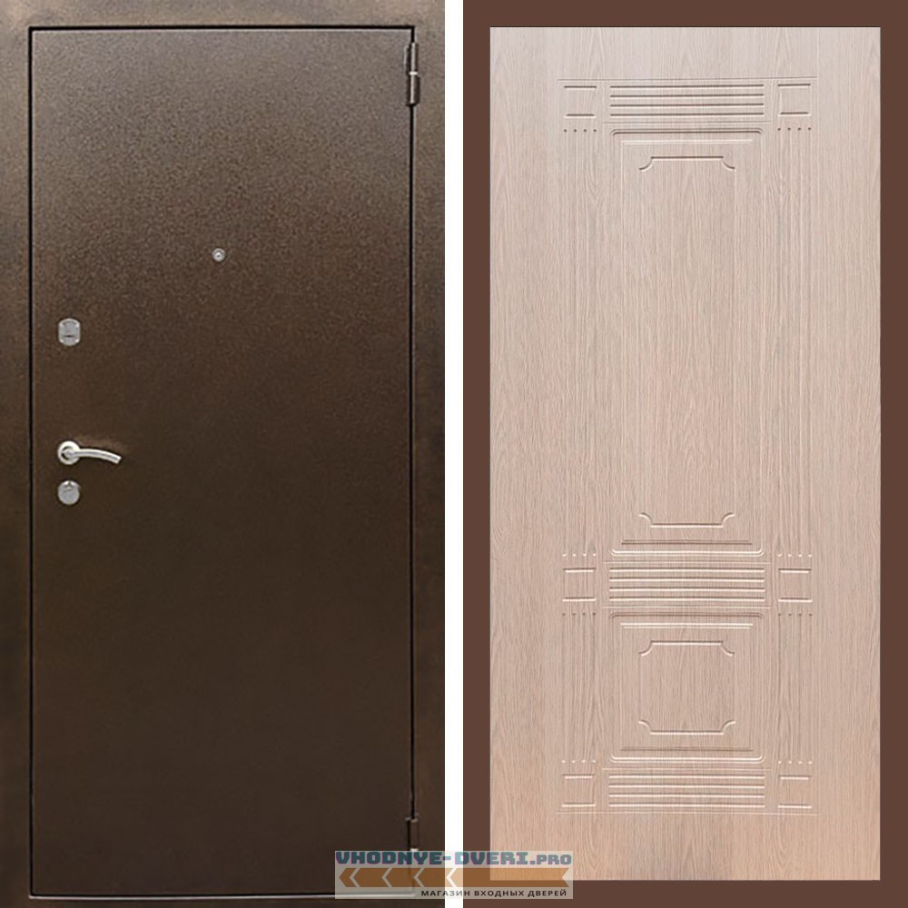 Входная дверь REX (Рекс) 1А Медный антик ФЛ-2 беленый дуб 6мм