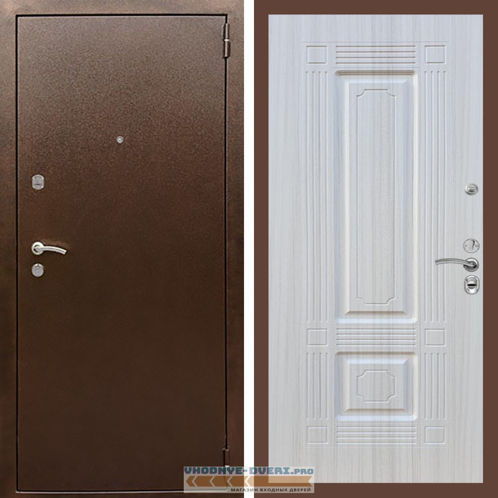 Входная дверь REX (Рекс) 1А Медный антик ФЛ-2 Сандал белый