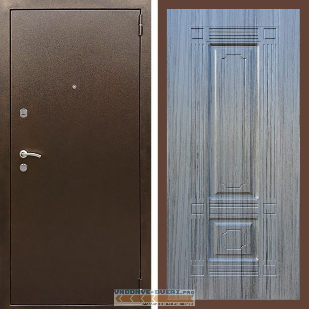 Входная дверь REX (Рекс) 1А Медный антик ФЛ-2 сандал серый 16 мм