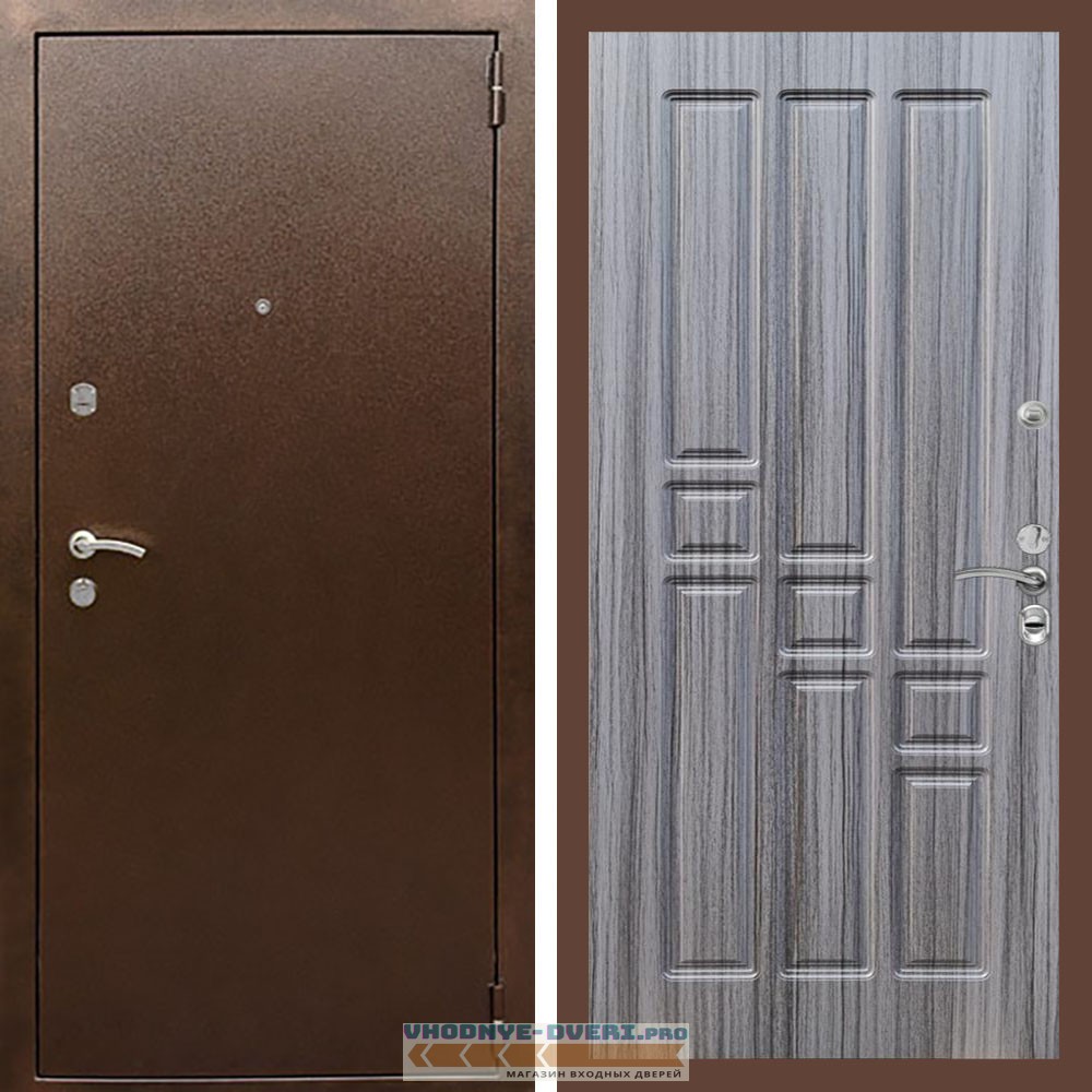 Входная дверь REX (Рекс) 1А Медный антик ФЛ-31 Сандал серый