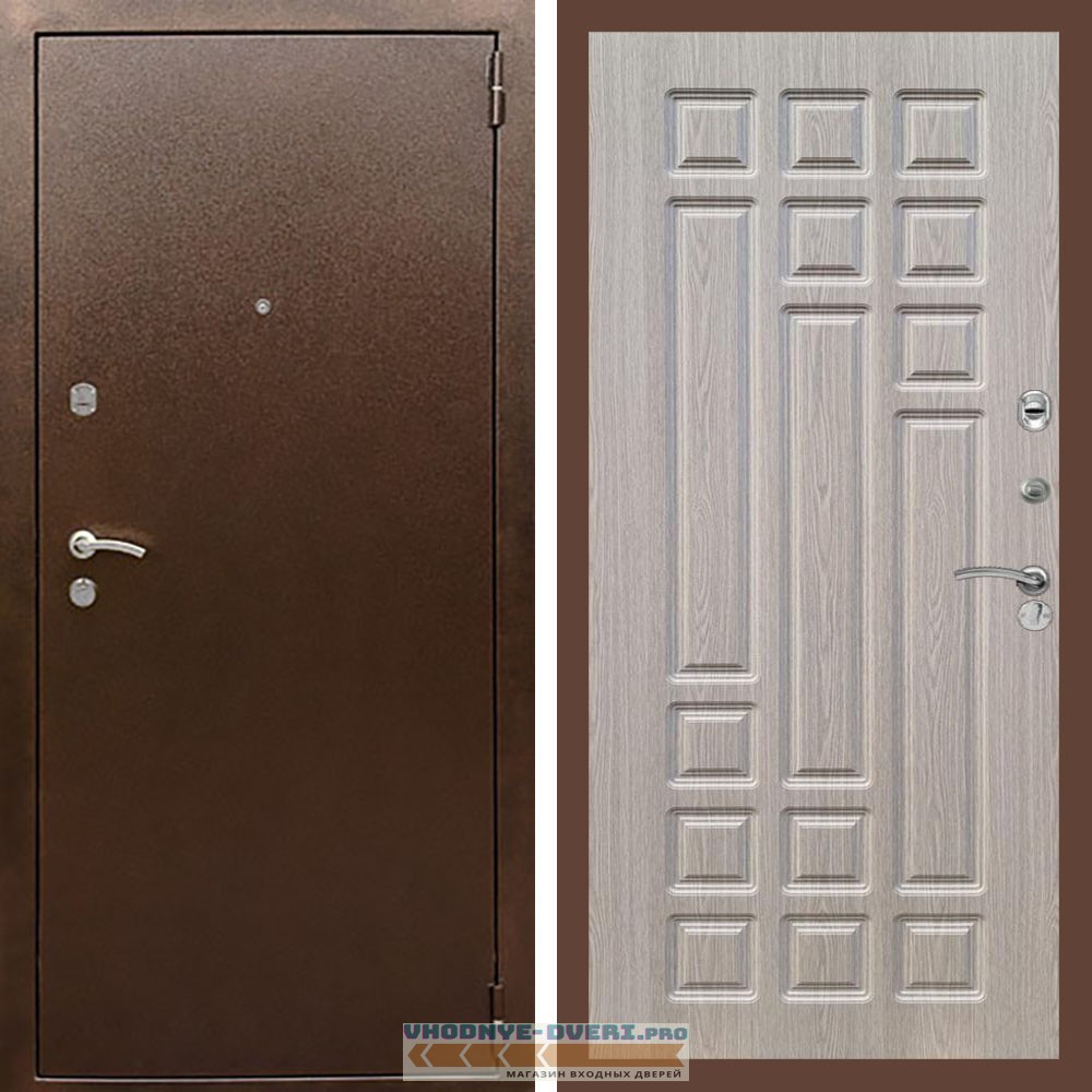 Входная дверь REX (Рекс) 1А Медный антик ФЛ-32 Беленый дуб