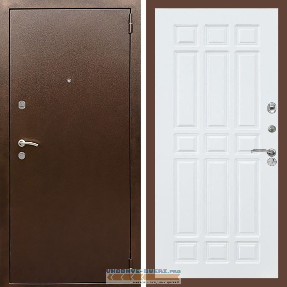 Входная дверь REX (Рекс) 1А Медный антик ФЛ-33 Белый матовый