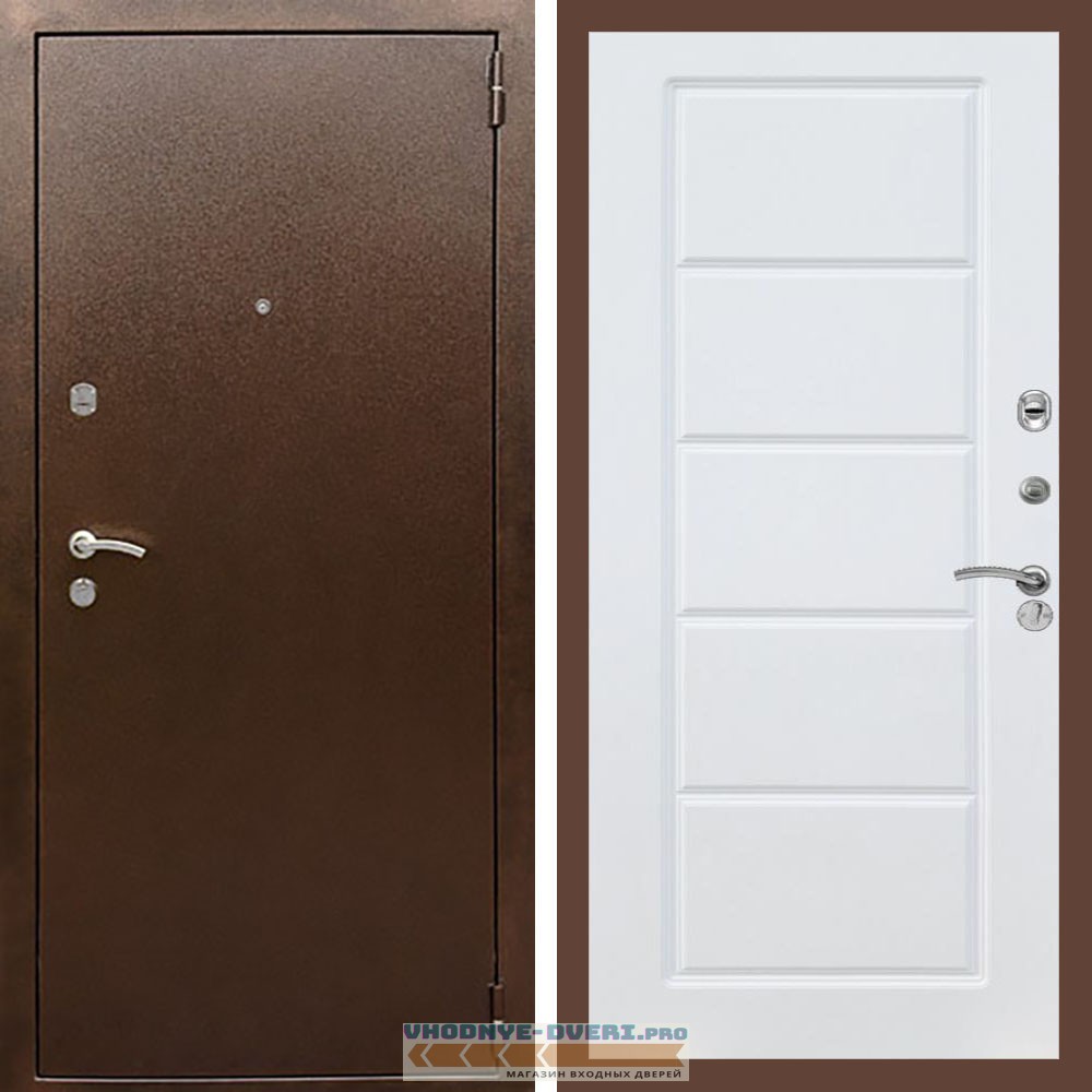 Входная дверь REX (Рекс) 1А Медный антик ФЛ-39 Белый матовый