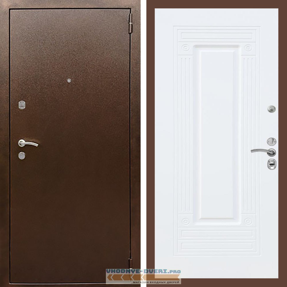 Входная дверь REX (Рекс) 1А Медный антик ФЛ-4 Белый матовый