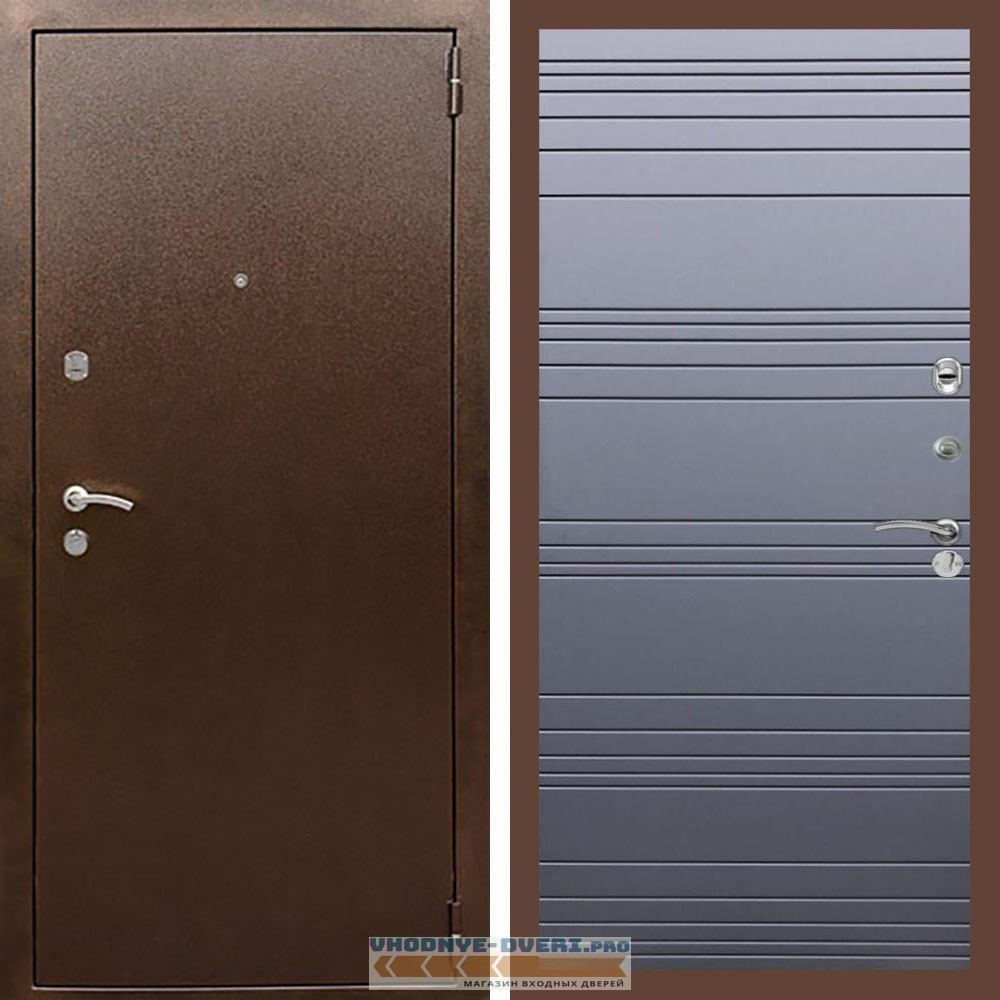 Входная дверь REX (Рекс) 1А Медный антик полоски горизонтальные силк титан