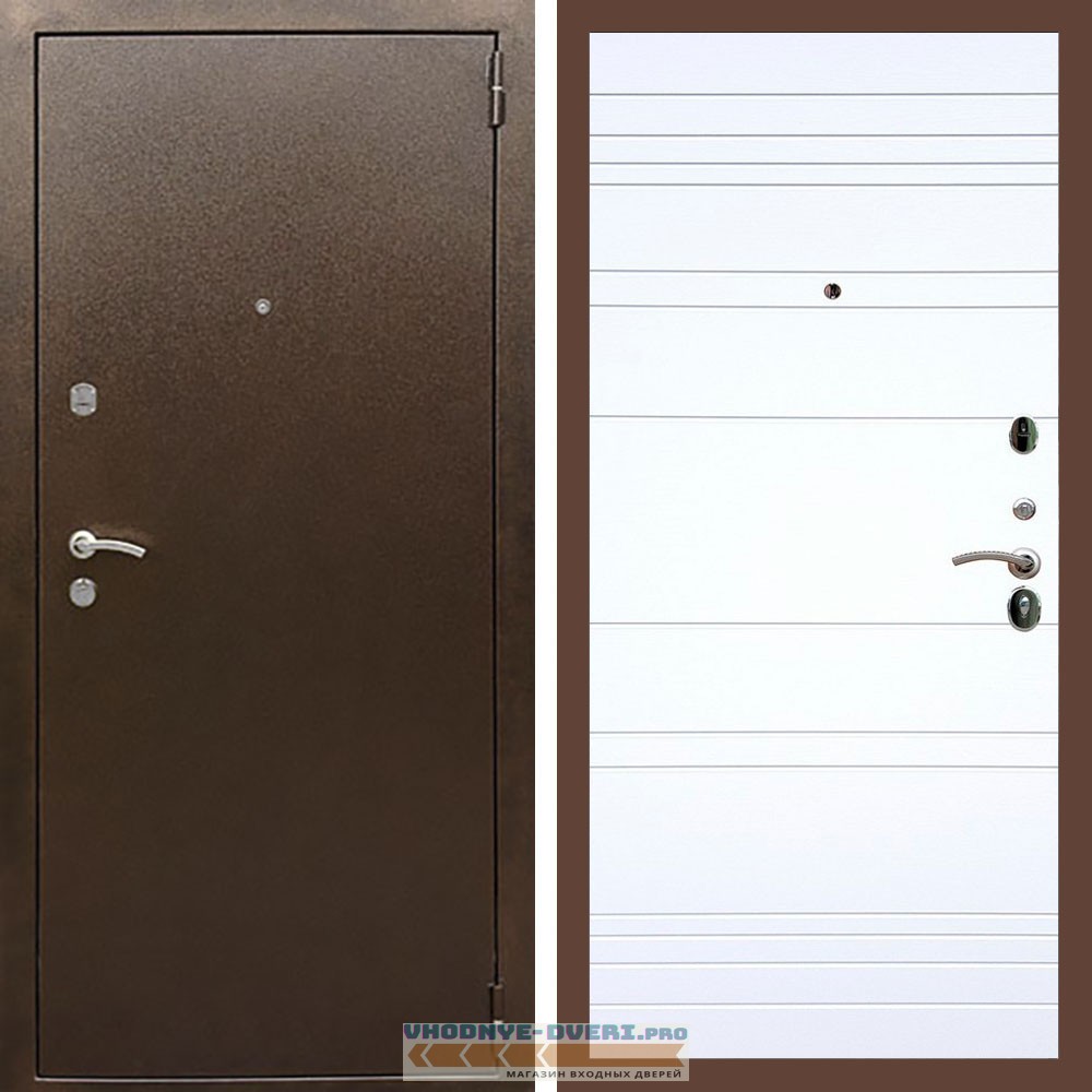 Входная дверь REX (Рекс) 1А Медный антик рекс 14 база белый матовый