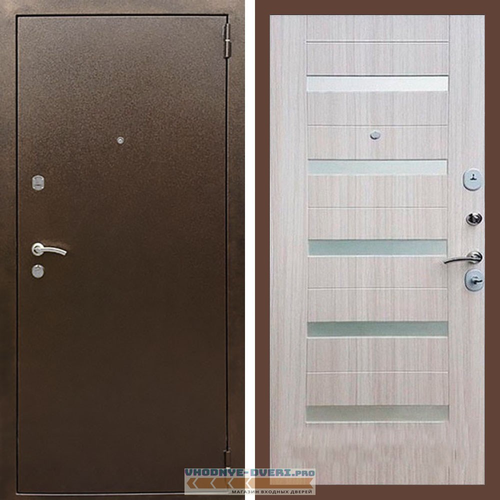 Входная дверь REX (Рекс) 1А Медный антик СБ-14 сандал светлый белое стекло