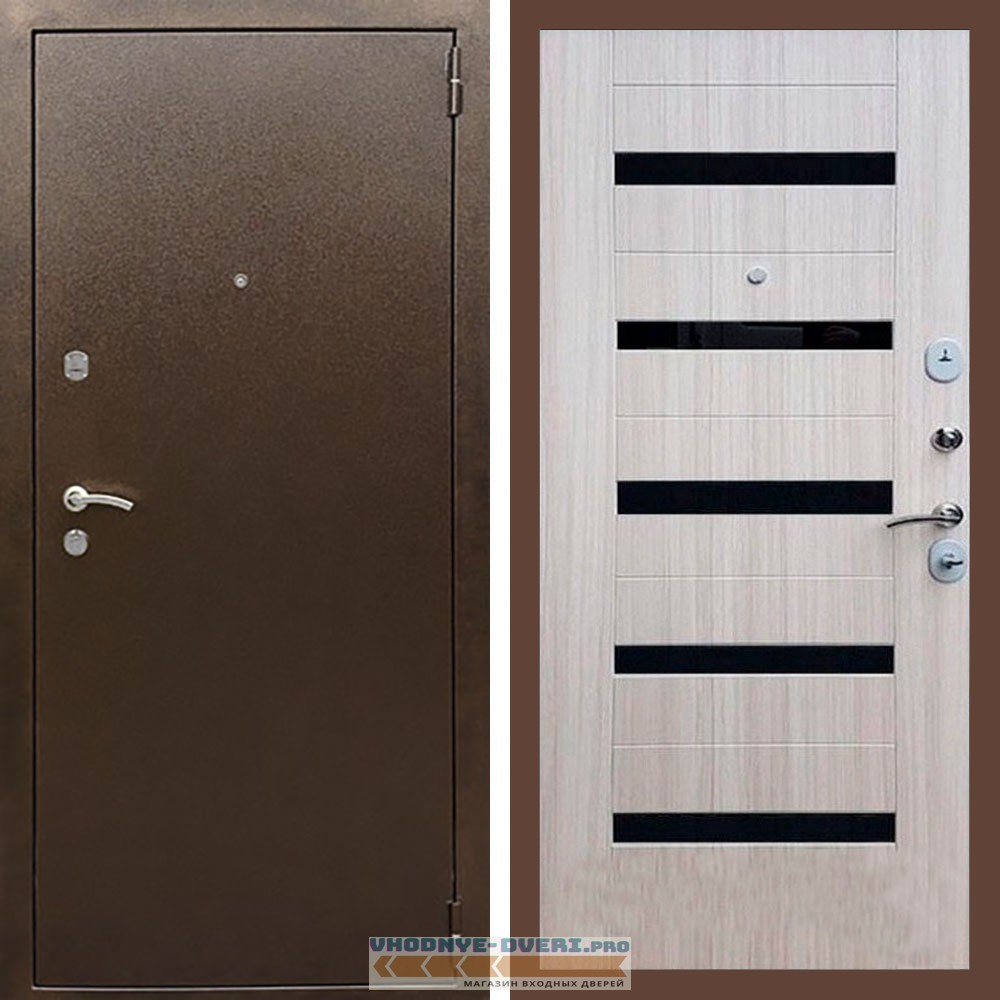 Входная дверь REX (Рекс) 1А Медный антик СБ-14 сандал светлый черное стекло