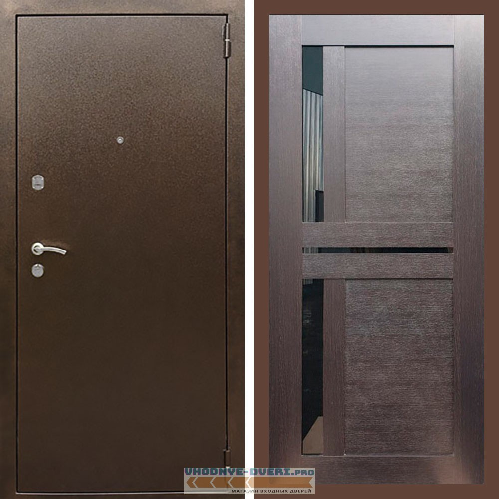 Входная дверь REX (Рекс) 1А Медный антик сб-18 венге черное стекло