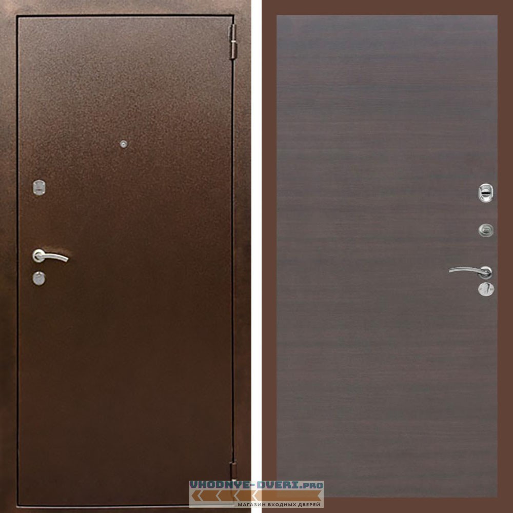 Входная дверь REX (Рекс) 1А Медный антик Венге поперечный гладкая