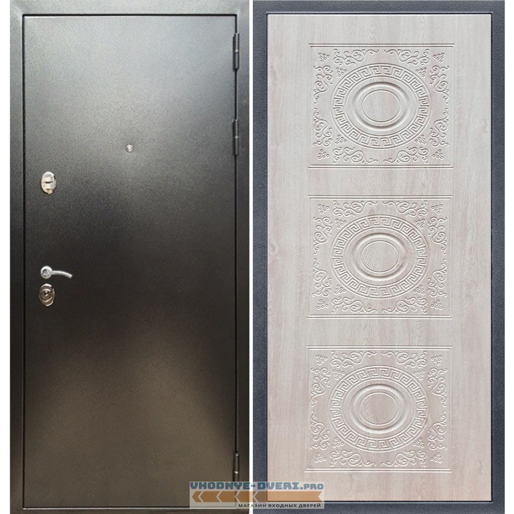 Входная дверь REX (Рекс) 5 (антик серебро) д-18 сосна белая