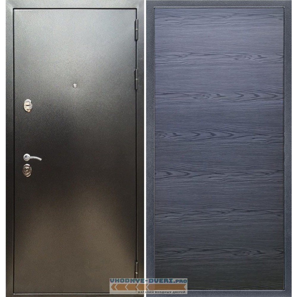 Входная дверь REX (Рекс) 5 (антик серебро) дуб тангент черный горизонт софт